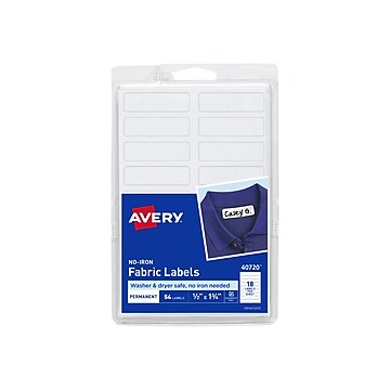 Avery No-Iron Fabric Labels, 0.5" x 1.75", White, 18 ... - Staples.com Avery No-Iron Fabric Labels, 0.5" x 1.75", White, 18 Labels/Sheet, 3 Sheets/Pack (40720) Item #: 24469226 | Model #: 40720 | 4.5 34 Reviews 2 Questions | | Free Returns Highlights Perfect for daycare clothing such T-shirts, sweatshirts, tank tops, bags, backpacks, inside of shoes, baby bottles, face masks, and more